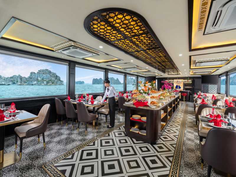 During time the boat cruising among islands and islets of magnificent Halong bay and Bai Tu Long Bay, the nice set-menu lunch will be served.