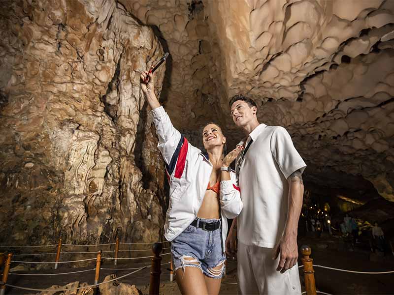 14:30 Your first excursion is a visit to Luon Cave - one of the most unique caves in Halong Bay featuring the self-contained lake inside a closed