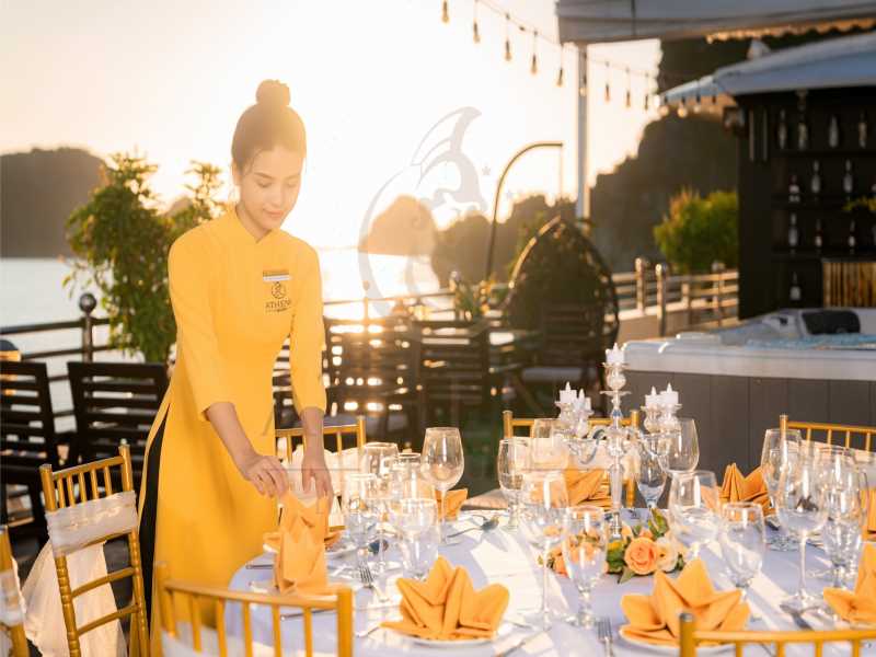 12:00 CHECK-INWarmly welcomed by Athena Team in Halong International Harbour. Complete the luggage check-in procedure at the waiting lounge before boarding for the cruise.