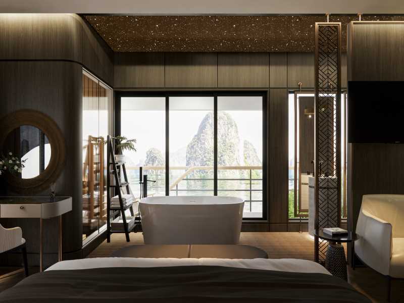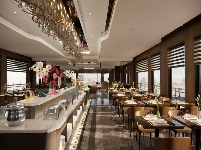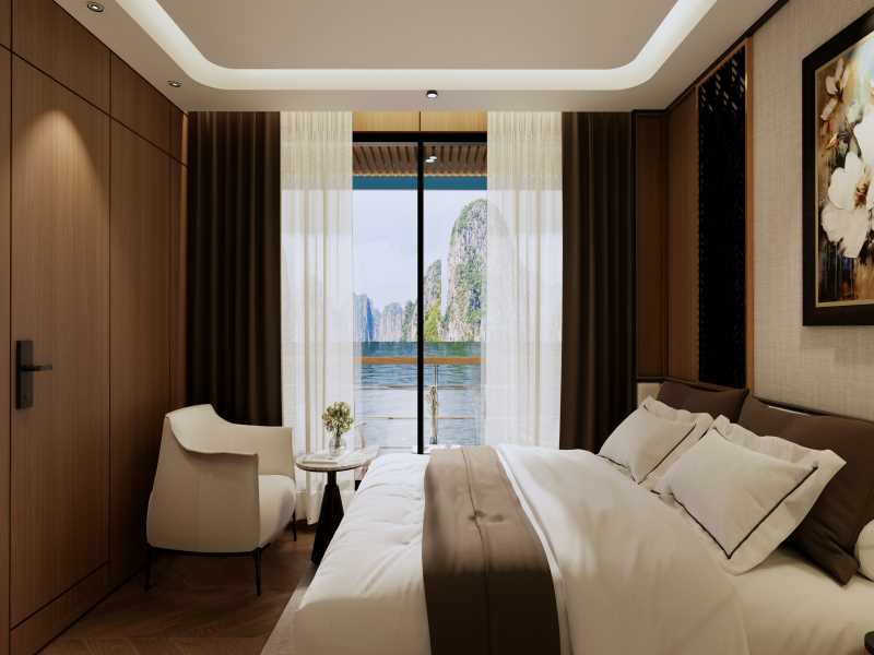 Azura Cruise is an elegant 2026 masterpiece. Experience a refined Azura Cruise Halong Bay journey featuring eco-friendly luxury and sophisticated 5 star service. Azura Cruise is scheduled to launch in January 2026, offering a refined cruising experience with an elegant and sophisticated design. With 30 cabins across 4 decks, the cruise provides an intimate atmosphere while maintaining comfort and style. Onboard dining features a diverse Asian-European menu, thoughtfully curated to suit international tastes. Azura Cruise also places strong emphasis on eco-friendly practices, minimizing plastic waste and promoting sustainable travel on the bay.