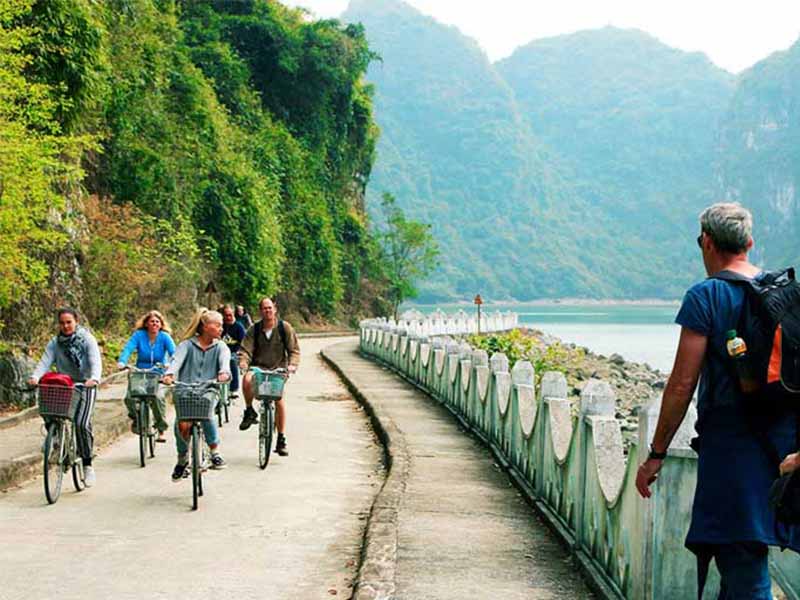In the Viet Hai wharf, you get bicycles or electric car and go sightseeing to Viet Hai Village (about 4km). A small village deep in the valley, surrounding mountains, beautiful scenery with rice fields, buffalos … You stroll around the village, meet with local people, visit the school of the local children, or discover the village by walking around.