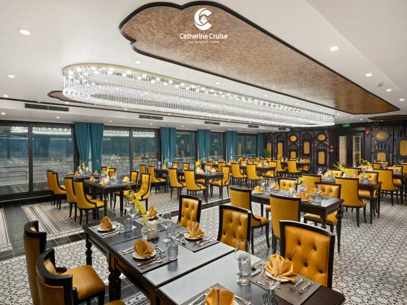Catherine Cruise is a premier 5 star cruise. A Catherine Cruise Halong Bay journey sets a new benchmark for elegance with high-end amenities and inclusive service. Launched in 2023, this 5 deck ship features 39 luxury cabins, all with private balconies. The 2 days 1 night itinerary explores iconic landmarks including Sung Sot Cave, Titop Island, and Luon Cave. Catherine is uniquely distinguished by its Halal certification, dedicated prayer rooms, and modern elevator system, ensuring a seamless and welcoming experience for all international travelers seeking a refined and thoughtful escape.