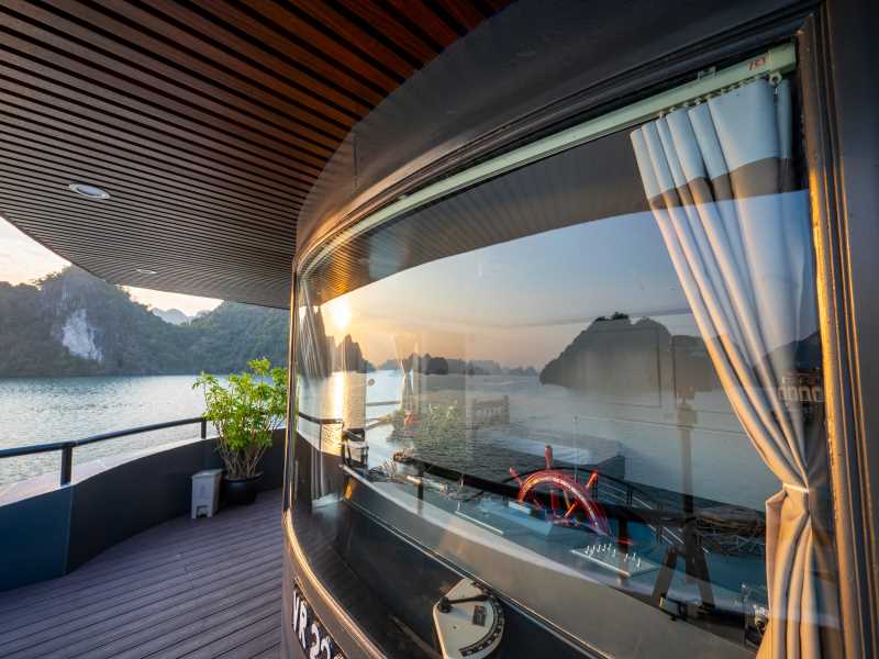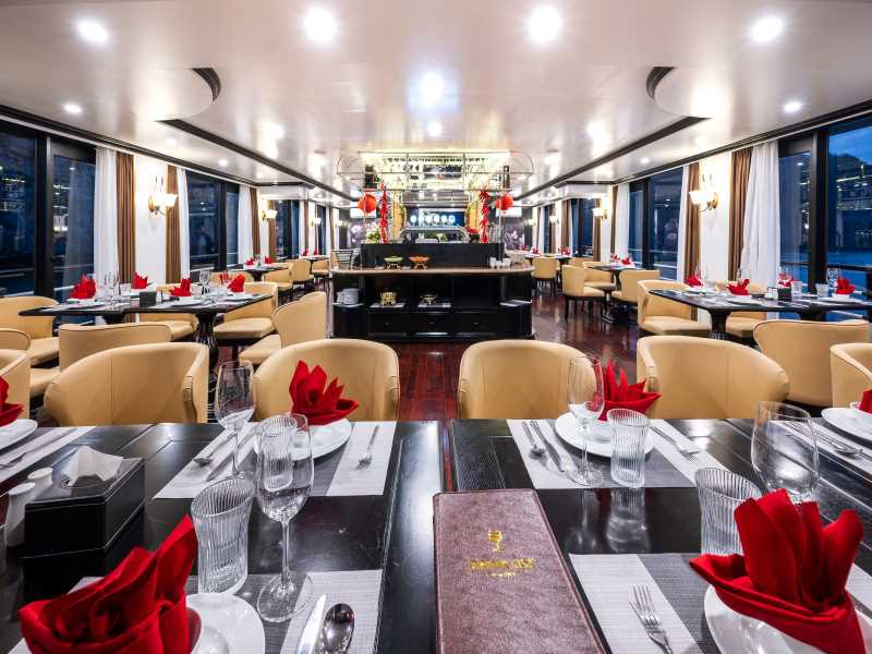 12:30. The Cruise Manager and crew member welcome you onboard with guiding information and a safety briefing. Enjoy a fabulous lunch in our restaurant. During lunch time, our cruise starts to sail through the magnificent Lan Ha Bay, a geological extension of Halong Bay which is less visited, less inhabited and therefore has the extra appeal of being a more peaceful place. Check in your cabin.