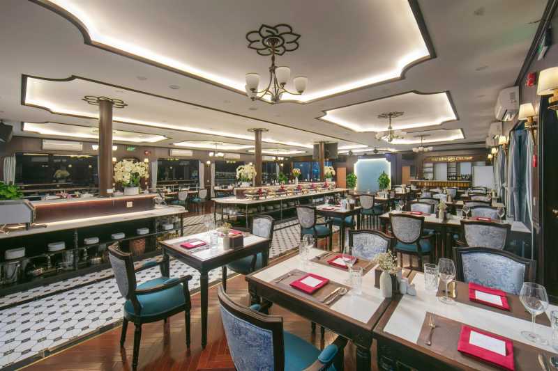 Step onboard the elegant Du Yen Cruise and receive a warm welcome from our professional crew. After a brief safety introduction, check into your luxurious cabin. The journey begins with a Savoring Fusion Lunch served in the sophisticated dining room. As you dine, the cruise glides past thousands of limestone karsts, offering a breathtaking panoramic view of the World Heritage site.