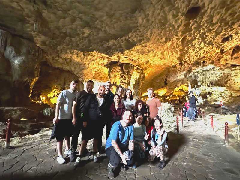 Embark on an adventure to Sung Sot Cave (Surprising Cave), the largest and most magnificent cave in Halong Bay, famous for its awe-inspiring stalactites and stalagmites. Afterward, we head to Titop Island. Here, you can choose to conquer the summit for a 360-degree bird’s-eye view of the bay or enjoy a relaxing swim in the emerald waters and sunbathe on the white sandy beach.