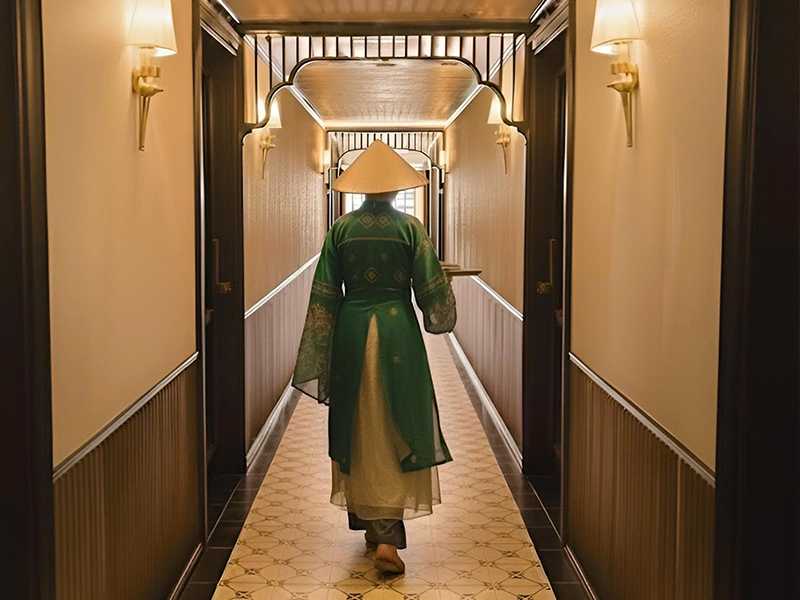 After dinner, step back in time with our Gam Voc Odyssey Concept. Guests are invited to dress in Traditional Vietnamese Attire (Ao Dai or ancient garments) provided on board. This is a special "Check-in" opportunity to capture stunning photos against the cruise’s classic oriental backdrop. Afterward, you may choose to join squid fishing, enjoy a cocktail at the bar, or simply relax under the starlit sky.