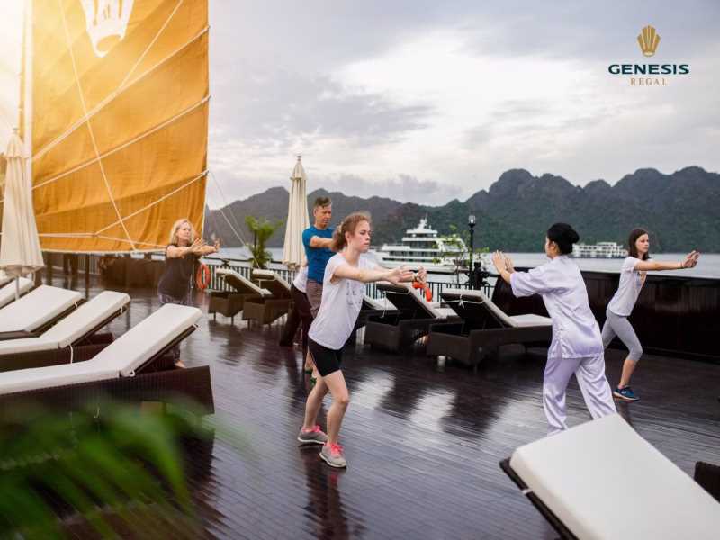06.00: Tai Chi exercise to start the day is held on the roof of the cruise. This is also the moment when visitors can catch the sunrise on the bay.