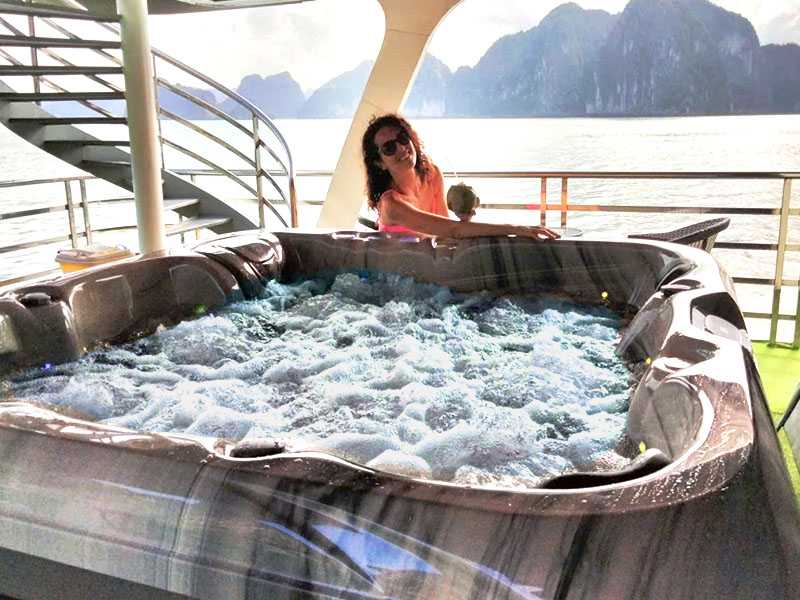 - Enjoy the comfort in the big Four-season JACUZZI TUB on the sundeck while admiring the stunning views. (The Jacuzzi Tub that also makes our cruise and your private day trip organized difference with others).