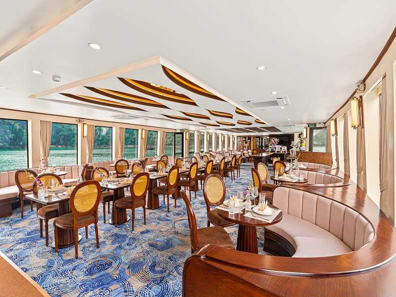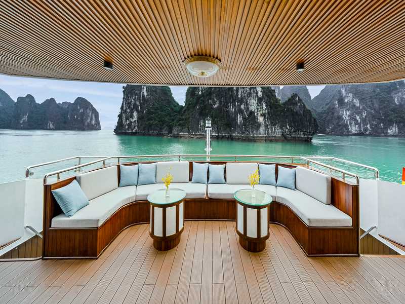 Upon arrival at Halong International Port, the Halong Symphony crew warmly welcomes you aboard, ensuring a professional and friendly start to your exploration of Halong Bay.