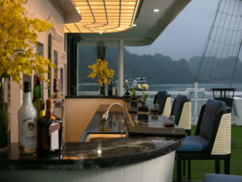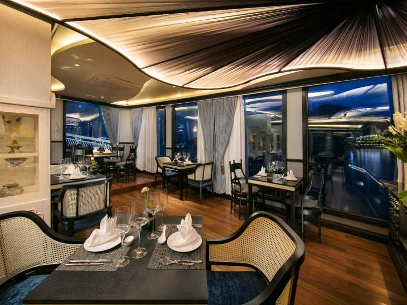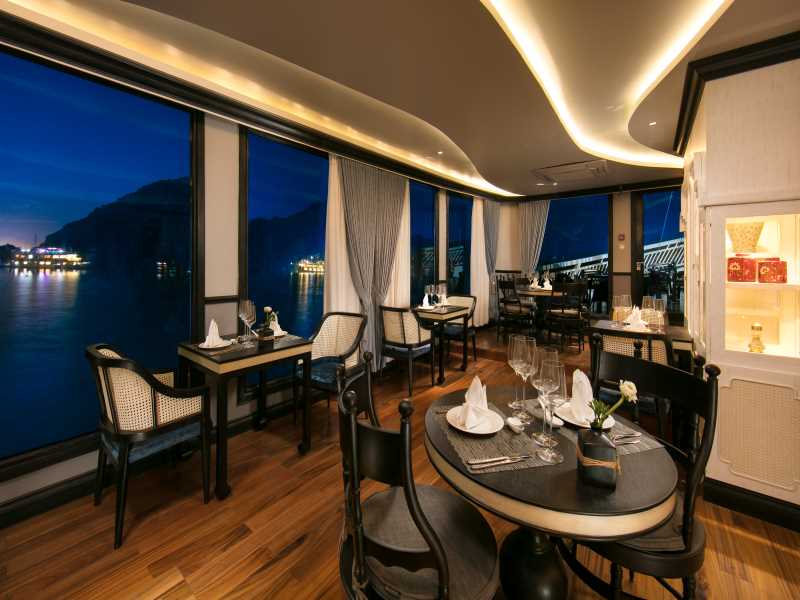 Enjoy delicious local food prepared and served for you by our wonderful onboard catering staff, night view on Lan Ha Bay is incredible.