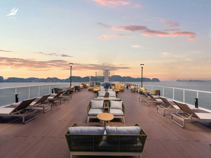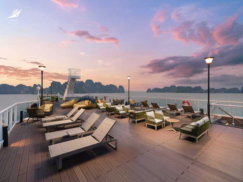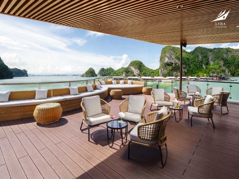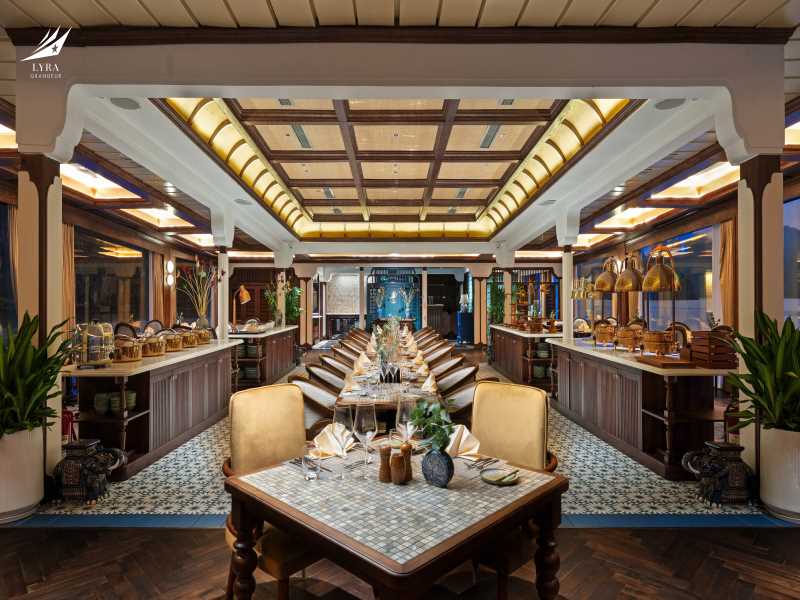 Lyra Grandeur Cruise invites you to relax at the Spirit of the Sea Lounge and the Ocean Sky Sundeck with the Happy hours “Buy 2 get 1 free” program. Enjoy the sunset party with freshly prepared snacks and your favorite drinks while watching the sunset fall over Lan Ha Bay.