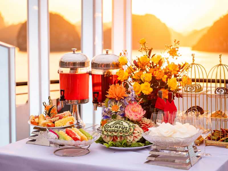 - Sunset Party: Red wine, Tea, Cakes, Shrimp Chips, Fresh Fruits, etc