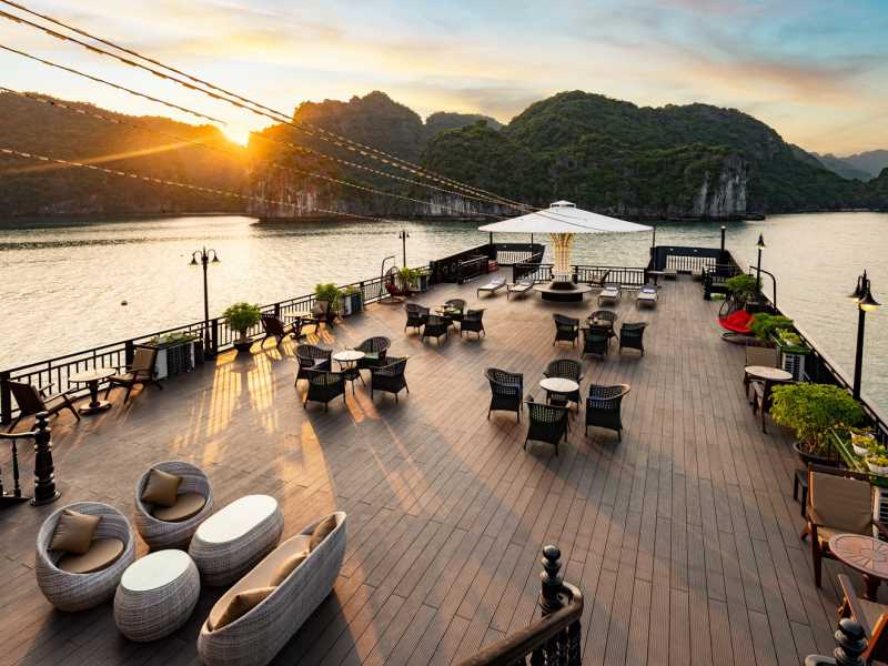 17:30 - 18:30 Enjoy Afternoon Tea Party with free freshly prepared snacks fruit and your ordered favorite drinks while waiting for sunset on Lan Ha Bay. Take advantage of the Happy hours “Buy 2 get 1 free” drink program at the Mimosa Cafe Lounge and the Sky bar on 5th floor