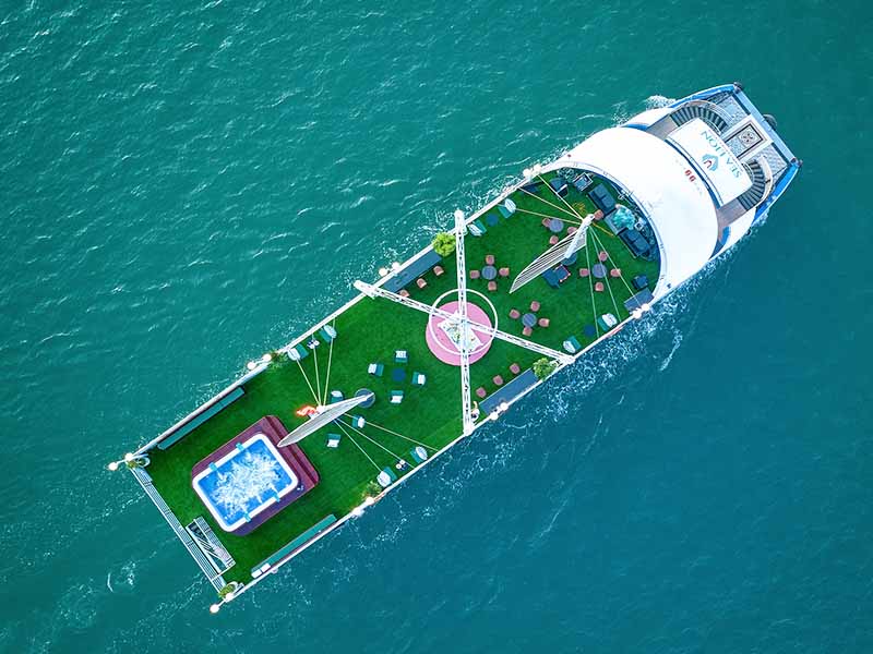 The boat will move to Luon Cave area - a water cave for kayaking or rowing bamboo boat or just stay on board for relaxing.
