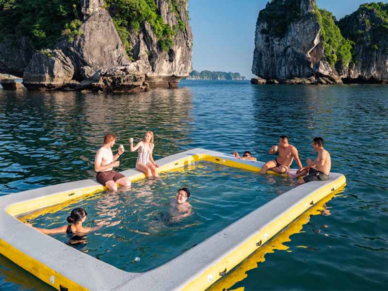 Our Captain and Tour Guide will choose the best stop for the group to experience interesting activities: Swimming in the middle of the sea, boat- jumping, sliding down from the top deck to cool water, kayaking,...