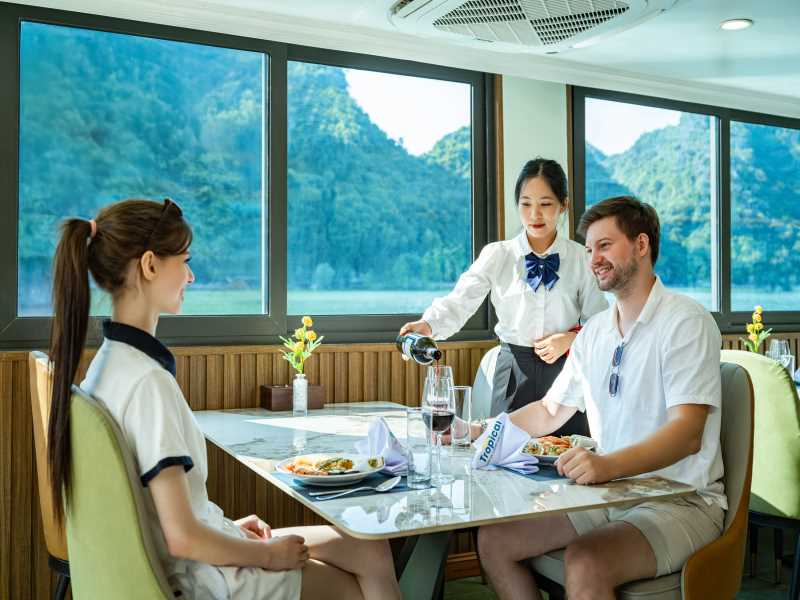 Arrive at Tuan Chau Harbor and check in to the Tropical Cruise. You will be greeted with a refreshing welcome drink.