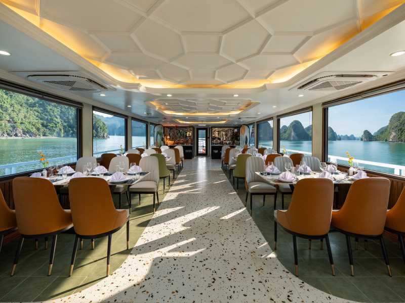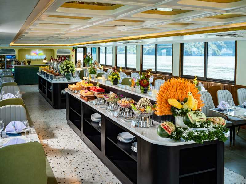 Enjoy a 5-star buffet lunch on board, featuring a wide variety of fresh seafood and delicacies, while the cruise sails through Lan Ha Bay - Cat Ba Island.