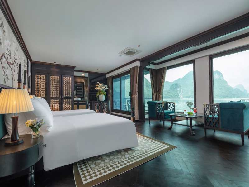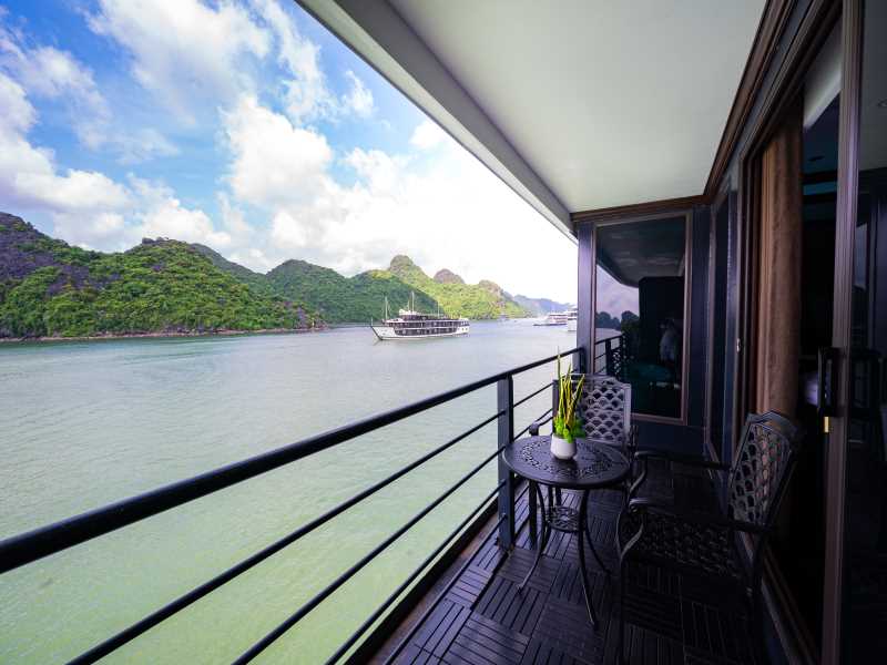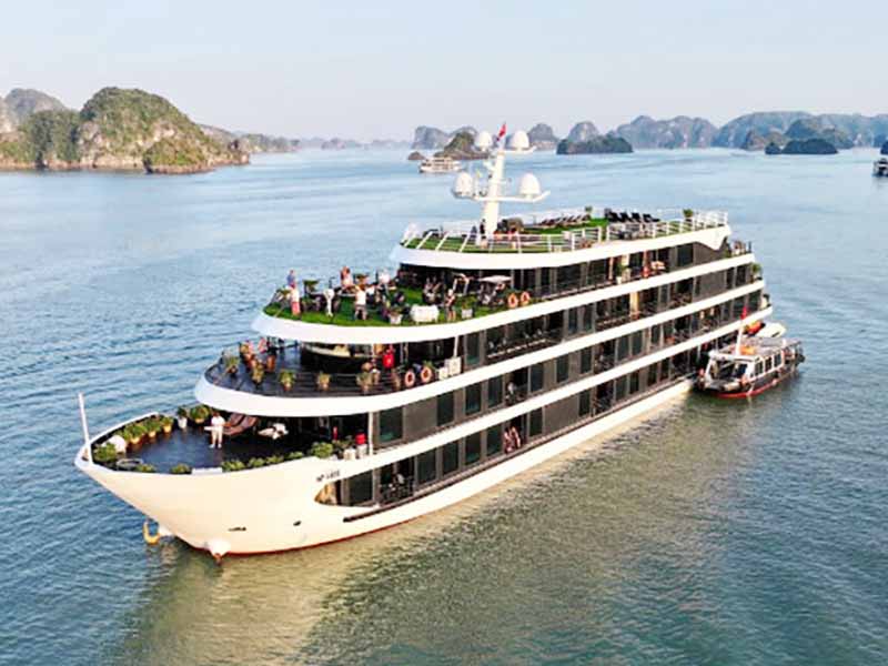 13:15 Enjoy afabulous lunch in our restaurant. During lunch time, our cruise starts to sail through the magnificent Lan Ha Bay, a geological extension of Halong Bay which is less visited, less inhabited and therefore has the extra appeal of being a more peaceful place. After lunchtime, you will have a short break before joining the first activity of the tour.