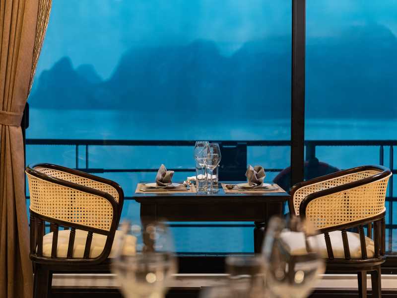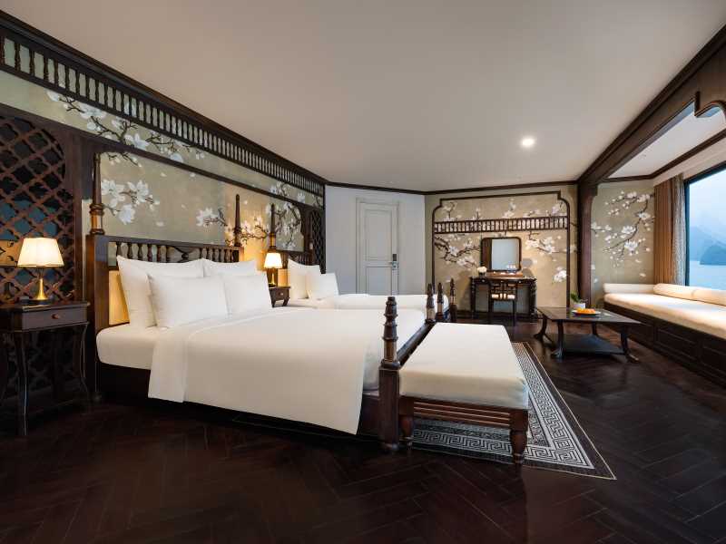 12:00 - 14:00: Moving from Tuan Chau International port to Venus Cruises on tenders/canoes. After boarding, Cruise Manager will give a brief about safety regulations and tours. Lunch will be served while the boat is sailing deeper to Lan Ha Bay. Room key can be handle to guests before, during or