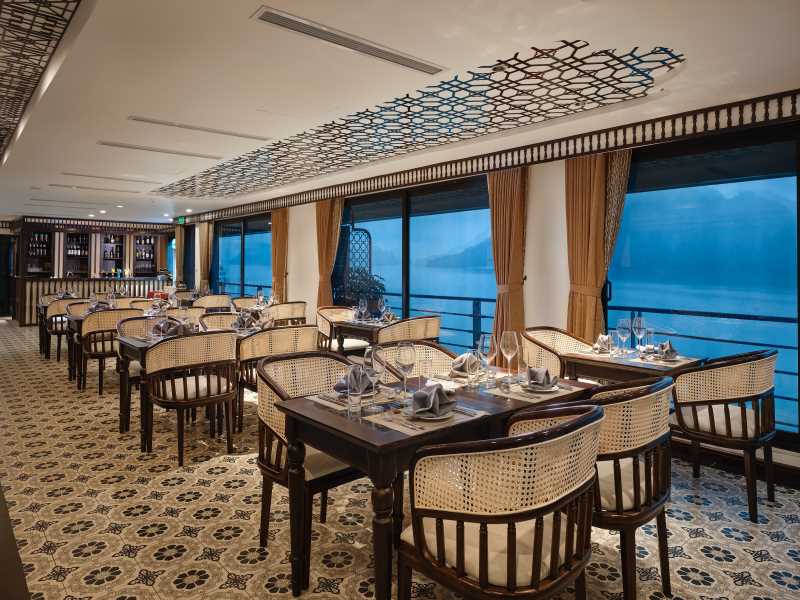 15:00 - 16:30 Cruises anchor at Dark & Bright Cave area and start the first activity of the trip- visiting Cave on Rowing bamboo Boat.