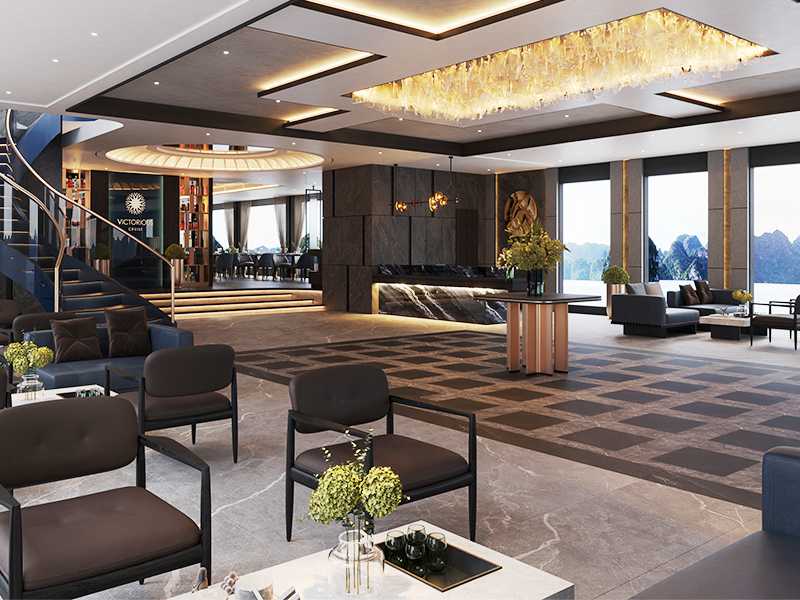 7:50 - 8:20 | In the morning, the journey begins from Hanoi, taking you away from the bustling city life toward the World Natural Heritage site. Upon arrival, guests proceed to check in at the Victorious Cruise Lounge - Lot 29, Tuan Chau International Marina.12:00 | Victorious Cruise officially welcomes guests on board. Enjoy a refreshing welcome drink asthe cruise gently setssail, opening a spectacular voyage throughthemajestic seascape of Ha Long Bay.