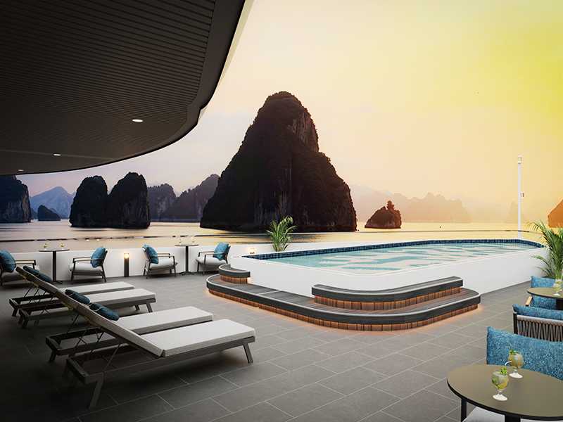 06:00 - 06:15 | Begin the day with a serene morning Tai Chi session on the sundeck, breathing in the fresh sea air and embracing the tranquil beauty of Ha Long Bay at sunrise.