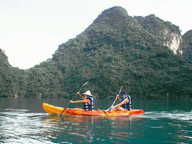 09:00 - 11:00 | Kayaking at Trinh Nu Cave, Trong Cave offers an intimate encounter with nature, gliding through crystal-clear waters and past majestic limestone cliffs sculpted by time.